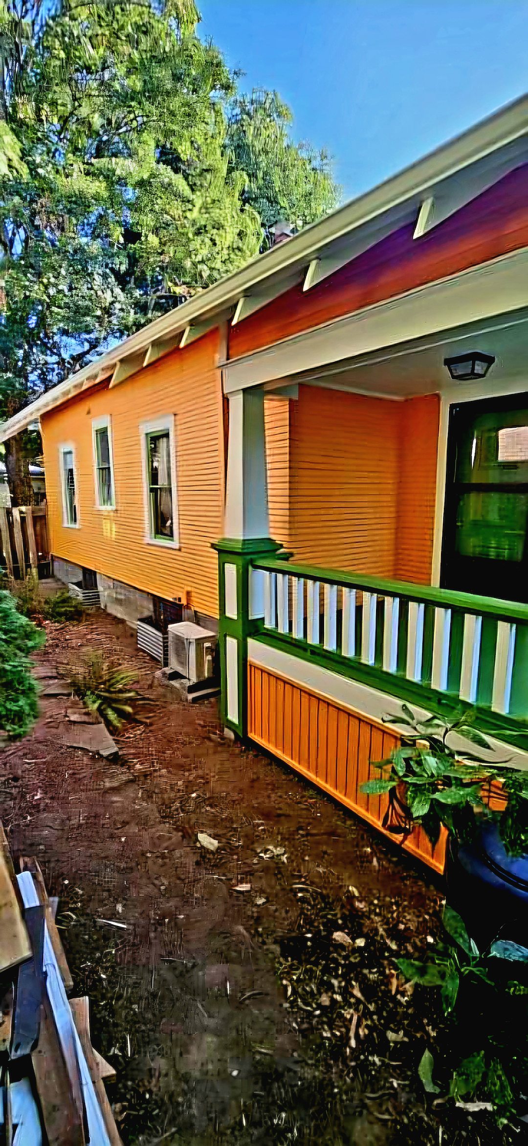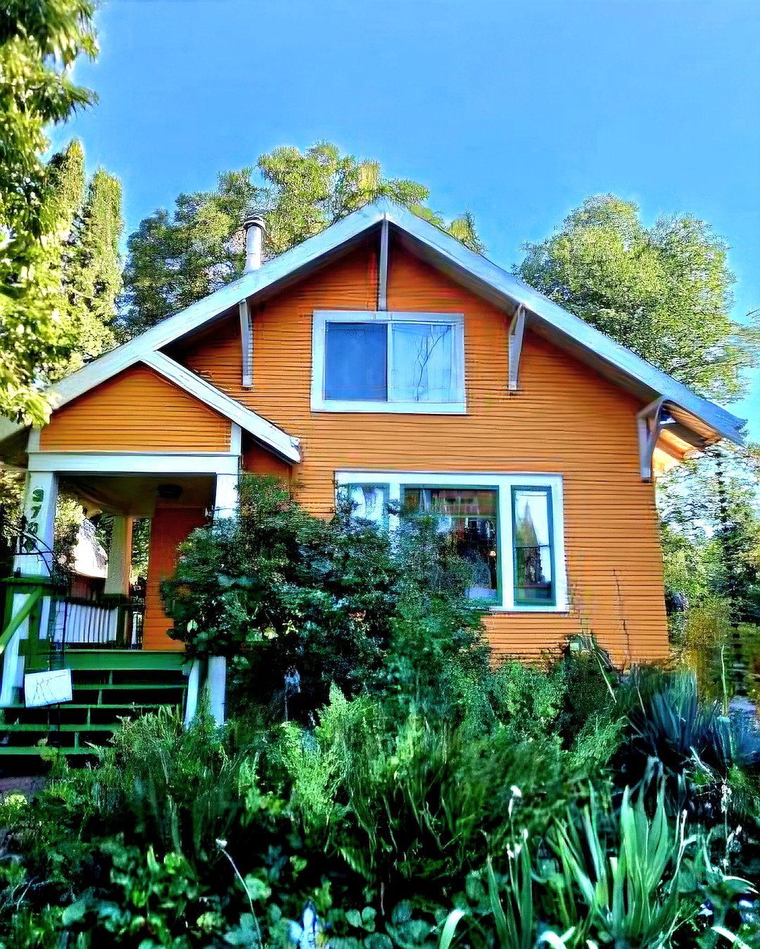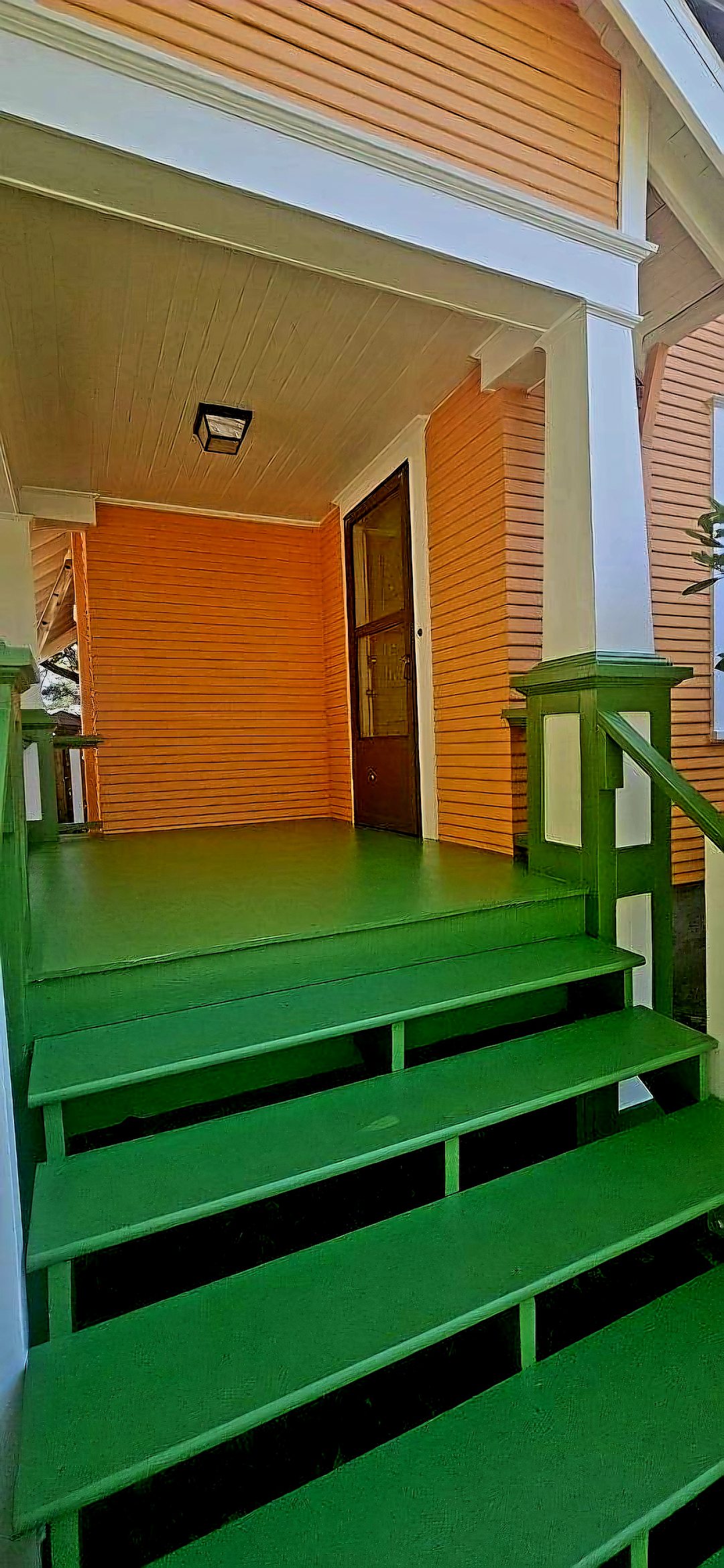 Mountain Painting Company recently completed a colorful exterior restoration project on a historic two-story bungalow in SE Portland’s Reed/Woodstock neighborhood. Built in the early 1900s, this home boasts classic trim details, strong bones, and a fir wood porch that required extensive repair.