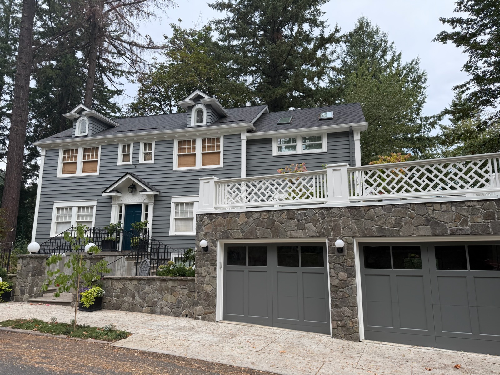 Nestled among the lush trees of Southwest Portland, this SW Fairview Road residence recently underwent a dramatic transformation. Our team at Mountain Painting Company completed a full exterior restoration and repainting, bringing new life and vibrancy to a historic Portland home.